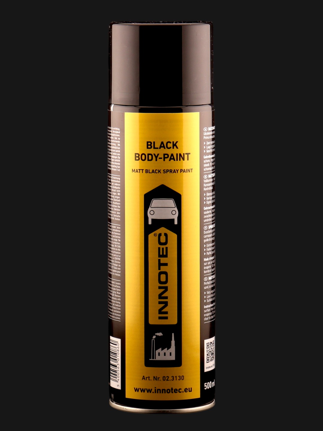Black Body-Paint ist ein vollkommen mattschwarzer Lack mit besonders niedrigem Kreidegehalt, wodurch das Produkt auch nach längerer Zeit nicht verwittert und hoch witterungsbeständig ist. Black Body-Paint ist zudem überaus schlag- und stoßfest und eignet sich somit bestens zum Lackieren von Karosserieteilen, die werkseitig mattschwarz lackiert sind. Black Body-Paint ist sehr gut schleifbar und deshalb optimal einsetzbar als Kontrolllack. Black Body-Paint kann auch zum Sprühen verschiedener Stützen und Klemmen verwendet werden, die häufig nach Maß hergestellt sind. Durch die schnelle Trocknung können innerhalb kurzer Zeit mehrere Schichten Black Body-Paint aufgetragen werden. Da Black Body-Paint leicht schleifbar ist, eignet er sich auch perfekt als Kontrolllack. In der Sprühdose ist Black Body-Paint besonders benutzerfreundlich und anwendungspraktisch. Mit der Spezialdüse lässt sich das Produkt in einem ausgesprochen professionellen Sprühmuster auftragen.
