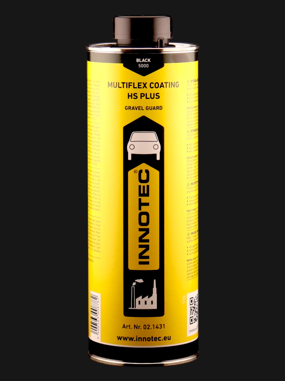 Multiflex Coating HS Plus ist ein hochflexibler Steinschlagschutz mit perfekten korrosionsschützenden und lärmdämmenden Eigenschaften. Aufgrund seiner einfachen Anwendung ermöglicht dieses Produkt es, die ursprüngliche Struktur perfekt zu imitieren. Multiflex Coating HS Plus ist isocyanatfrei und bleibend elastisch. Das Produkt haftet bestens auf blankem oder grundiertem Metall. Es trocknet sehr schnell und kann nach vollständiger Aushärtung mit praktisch jedem modernen Lacksystem übersprüht werden. Multiflex Coating HS Plus dient dazu, werksoriginale Oberflächen an Fahrzeugen wiederherzustellen, wie beispielsweise an Türschwellen, Radkästen und sonstigen Karosserieteilen. Eine wichtige Produkteigenschaft ist zudem, dass Multiflex Coating HS Plus in ausgehärtetem Zustand lösungsmittelfest ist. In der günstigen 1l-Packung kann Multiflex Coating HS Plus mit der Druckbecherpistole (Pressure Pot Gun) und Pressure Gun Basic aufgesprüht werden. Durch die zahlreichen Einstellungsmöglichkeiten dieser Pistolen kann fast jede gewünschte Schichtdicke und Struktur erzielt werden.