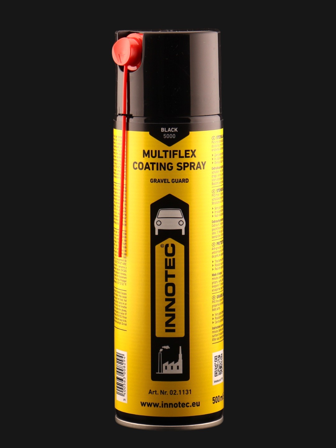 Multiflex Coating Spray ist eine 100% PVC-freie Schutzbeschichtung, speziell entwickelt als hervorragender Steinschlag- und Korrosionsschutz mit lärmdämmender Wirkung. Die werksoriginalen Strukturen können hiermit perfekt nachgebildet werden. Multiflex Coating Spray ist isocyanatfrei und bleibend elastisch. Das Produkt ist zudem gänzlich PVC-frei, sodass es sich nach dem Trocknen einwandfrei schleifen lässt. Multiflex Coating Spray haftet bestens auf blankem oder grundiertem Metall. Es trocknet sehr schnell und kann bereits nach 10 Minuten mit praktisch jedem lösemittelhaltigen Lacksystem nass-in-nass überlackiert werden. Vor Anwendung von Lacken auf Wasserbasis soll Multiflex Coating Spray völlig durchgehärtet sein. Multiflex Coating Spray dient dazu, werksoriginale Oberflächen an Fahrzeugen wiederherzustellen, wie beispielsweise an Türschwellen, Radkästen und sonstigen Karosserieteilen. Eine wichtige Produkteigenschaft ist zudem, dass Multiflex Coating Spray in ausgehärtetem Zustand lösungsmittelfest ist. In Sprayform ist Multiflex Coating besonders benutzerfreundlich und leicht anzuwenden.