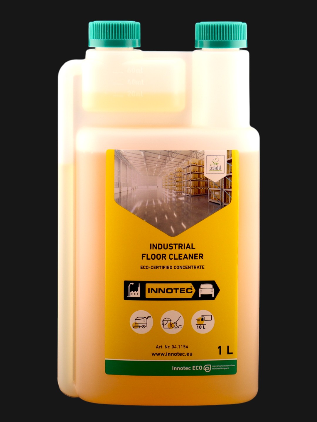 Industrial Floor Cleaner ist ein kraftvoller Bodenreiniger zum Entfernen von Fett, Öl, Ruß und mineralischen Verschmutzungen von harten, wasserbeständigen Böden. Dank seiner geringen Schaumbildung ideal für Scheuersaugmaschinen. Konzentrierte ÖKO-Formel, genauso wirksam wie herkömmliche Produkte. Industrial Floor Cleaner ist ein hochkonzentrierter alkalischer Bodenreiniger für industrielle Anwendungen. Der Innotec Bodenreiniger eignet sich hervorragend zur Entfernung starker Verschmutzungen auf allen alkali- und wasserbeständigen Böden wie Beton, Fliesen und industriellen Beschichtungen aller Art. Aufgrund seiner umweltverträglichen Tenside hat Industrial Floor Cleaner das exklusive EU Ecolabel erhalten, das in der gesamten Europäischen Union anerkannt wird. Die ökologische Formel wird aus nachwachsenden Rohstoffen hergestellt und ist innerhalb von 28 Stunden vollständig biologisch abbaubar. Industrial Floor Cleaner wurde speziell für den Einsatz in Scheuersaugmaschinen mit einer Konzentration von nur 0,5 bis 1% entwickelt. Bei manueller Verarbeitung können höhere Konzentrationen verwendet werden, um sehr starke Verschmutzungen lokal aufzulösen. Industrial Floor Cleaner ist erhältlich in der einfach zu handhabenden 1-Liter-Packung mit ergonomischem Dosiersystem wie auch in einer 5-Liter-Großpackung.