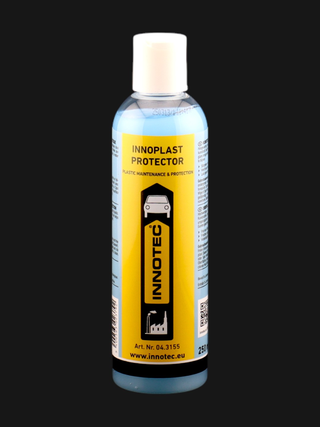 Innoplast Protector ist ein hochwertiges Schutzpflegeprodukt für nahezu alle Arten von Kunststoff. Das Produkt ist frei von Silikon, Wachs und Alkohol. Innoplast Protector macht Kunststoff und Gummi geschmeidig und verleiht ihn einen schmutzabweisenden Schutz. Dank der besonderen Zusammensetzung gibt Innoplast Protector der behandelten Oberfläche ihren ursprünglichen Glanz zurück, ohne Streifen oder eine fettige Wachsschicht zu hinterlassen. Innoplast Protector eignet sich bestens zum dauerhaften Schutz von Kunststoffteilen, wie Stoßstangen, Zierleisten, Stoßleisten, Handgriffen, Verkleidungsteilen, Rahmen, Sockelleisten usw., wie auch von Tür- und Dichtungsgummis. Auch präventive Pflege von Gummis ist entscheidend für die ihre Lebensdauer. Innoplast Protector ist sofort gebrauchsfertig. Mit dem Spezialaufsatz lässt sich das Produkt perfekt dosieren und ist somit besonders wirtschaftlich im Gebrauch. Innoplast Protector ist am einfachsten mit einem Innotec Spot Handpad oder einem trockenen Innotec Multi Wipe zu verarbeiten.